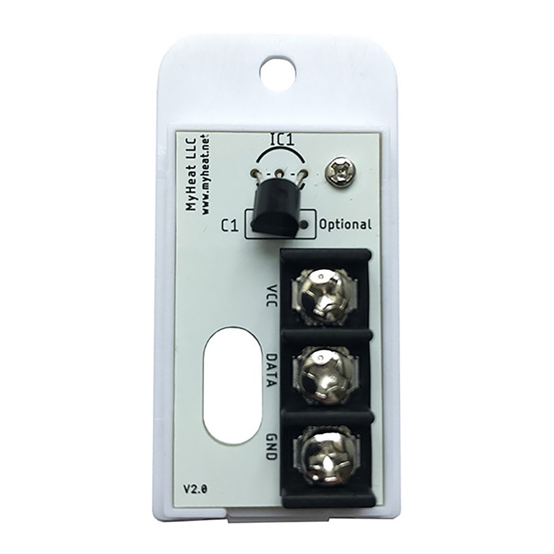 Датчик комнатной температуры MyHeat предназначен для настенного монтажа и измерения температуры воздуха внутри помещений. Он оснащён клеммой с винтовыми зажимами для монтажа без пайки, а в комплекте идёт двухсторонний скотч для удобной установки.