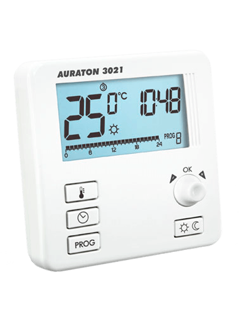 Проводной регулятор температуры Auraton 3021 позволяет управлять отопительным оборудованием для комфортного поддержания заданной температуры в помещении. Имеет возможность установить комфортную и пониженную температуру, температуру предотвращения замерзания, выбрать одну из 7-и предустановленных программ либо настроить программу работы самостоятельно.