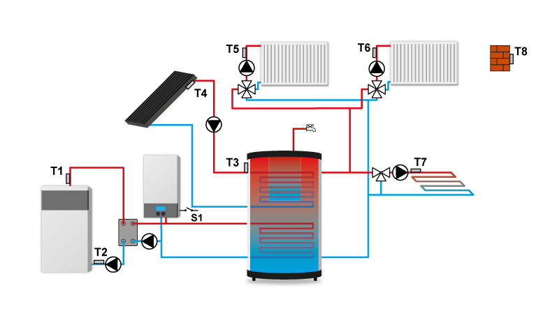 можно подключить 2 дополнительных модуля смесительных клапанов (TECH i-1 и TECH i-1m), что дает возможность управлять 2 дополнительными смесительными контурами;