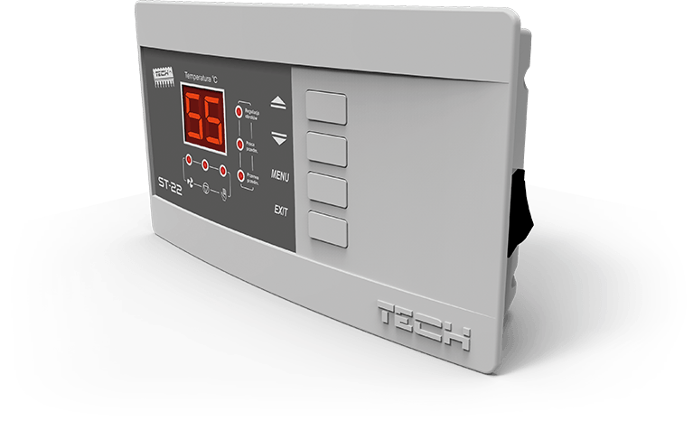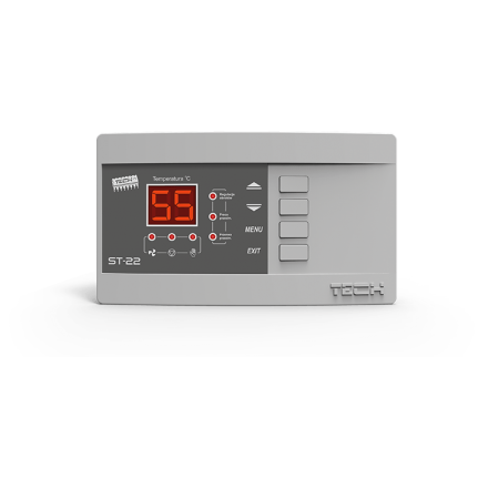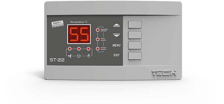 Контроллер для твердотопливного котла ST-22n TECH предназначен для управления твердотопливным котлом центрального отопления, оснащенным вентилятором и циркуляционным насосом воды системы Ц.O.Его задачей является поддерживание заданной температуры при помощи вентилятора. Корпус прибора адаптирован к монтажу на котле.