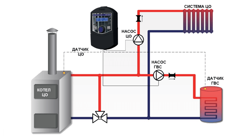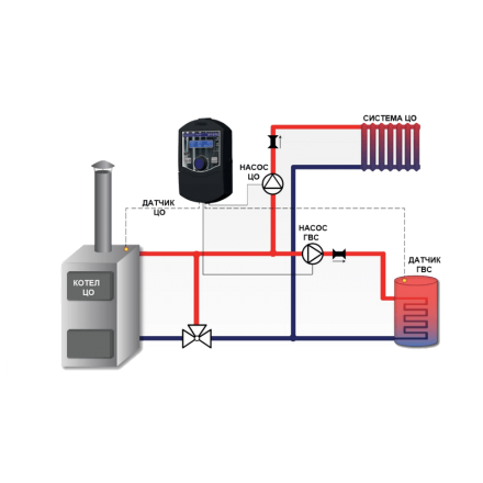 Регулятор ST-27i предназначен для управления насосом циркуляции воды Ц.О. и дополнительным насосом (гор. воды или системы «теплый пол»). Задачей регулятора является включение насоса Ц.О., если температура превысит предельное значение включения, и выключение насоса, если котел охладится (вследствие погашения). Для второго насоса, кроме температуры включения, пользователь устанавливает заданную температуру, до достижения которой насос будет работать.