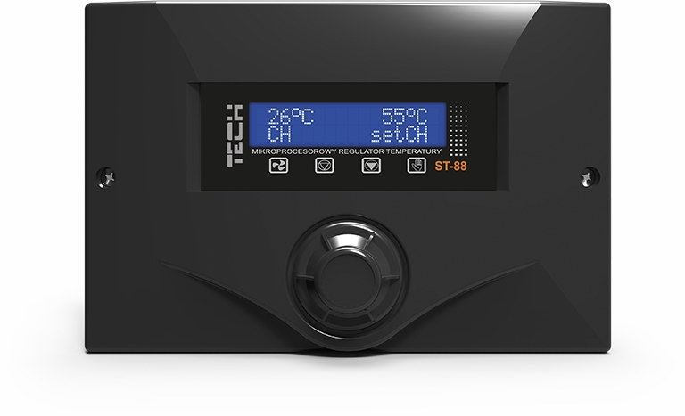 Контроллер Tech ST-88 zPID автоматически управляет работой вентилятора, насоса ЦО и ГВС, программным обеспечением zPID (интеллектуальный подбор параметров работы вентилятора).