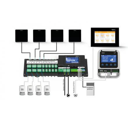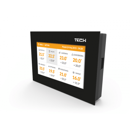 Панель управления TECH M-7 отвечает за просмотр и контроль параметров всей системы управления теплыми полами.