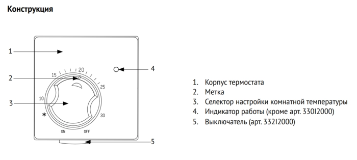 Проводной комнатный термостат UNI-FITT, диапазон регулирования температуры — 5-30 °С
