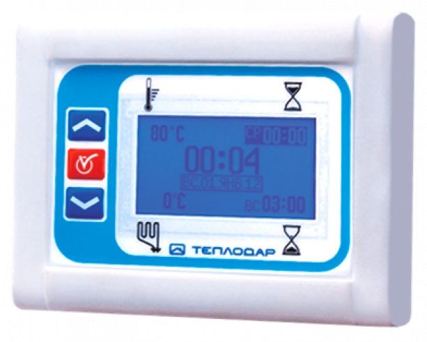 Пульт контролирует время включения/отключения ТЭНов котлов отопления и поддержание заданной температуры в парилке.