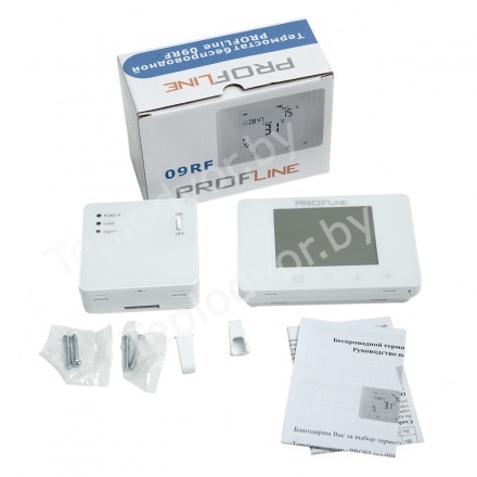 Терморегулятор PROFLine 09RF - электронный, беспроводной, программируемый регулятор температуры (термостат), который используется для включения/выключения системы отопления, при изменении температуры воздуха в обогреваемом помещении.