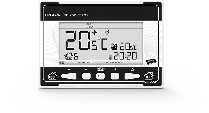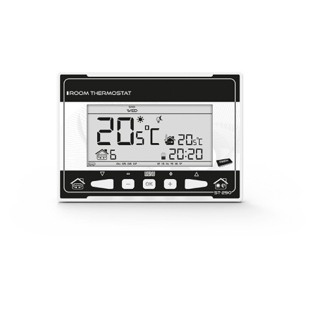 Комнатный регулятор (термостат) типа ST-290 предназначен для управления отопительным оборудованием (напр. газовым, масляным, электрическим котлом или контроллером котла).