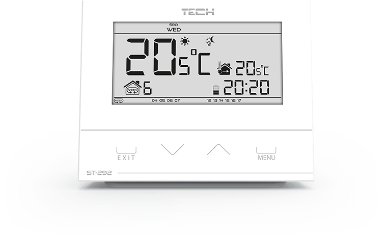 Комнатный термостат ST-292 предназначен для управления отоплением (напр., газовый котел). Термостат поддерживает постоянную температуру в квартире или доме, отправляя сигнал от датчика температуры к отопительному устройству, включая и выключая его.