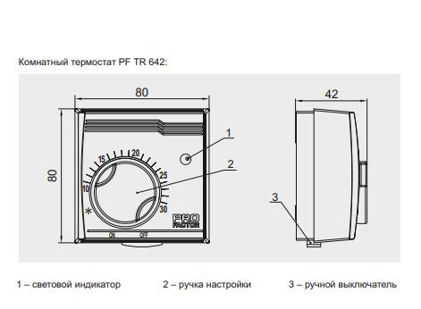Термостат комнатный PROFACTOR (PFTR 642) для плавного контроля подачи напряжения на греющий кабель, модель с электронным управлением.