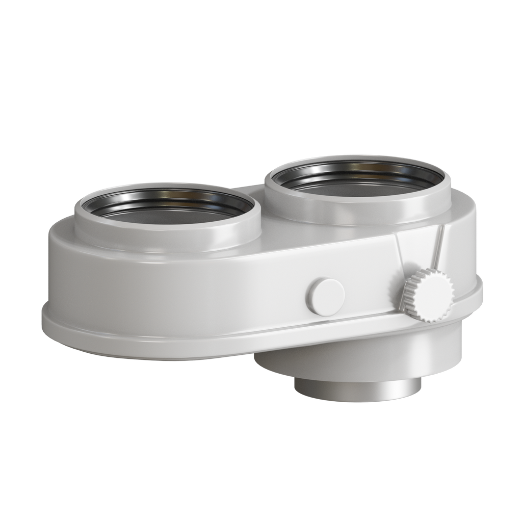Адаптер моноблочный Krats VA80-80LN для перехода с коаксиальной системы 60/100 на раздельную сиcтему D80/80, универсальный (кроме котлов Immergas), для организации раздельной системы забора воздуха и отвода отработанных газов конденсационного котла.