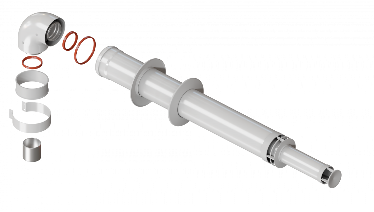 Коаксиальный комплект c антиобледенительным наконечником, длиной 750 мм., подключение к котлу через хомут.