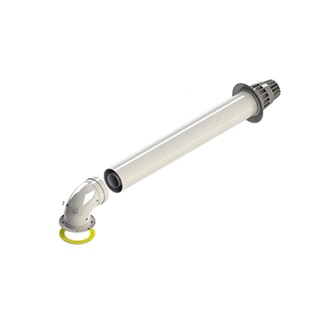Оригинальный коаксиальный дымоход Protherm — дымоход «труба в трубе». Применяется для организации забора воздуха и дымоудаления в газовых котлах Protherm серий Рысь и Ягуар с закрытой камерой сгорания (турбо), где кислород для горения принудительно забирается с улицы, через наружную трубу коаксиального дымохода диаметром 100 мм, проходящего сквозь внешнюю стену здания, а продукты сгорания выбрасываются через внутреннюю трубу коаксиального дымохода диаметром 60 мм.