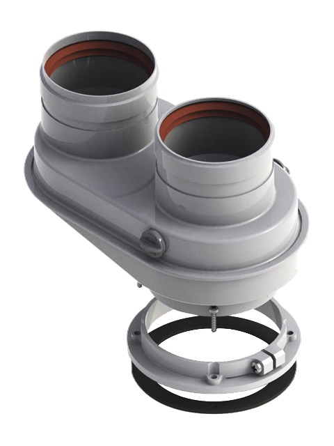 Разделительный адаптер применяется в случаях когда использование коаксиального дымохода не возможно.