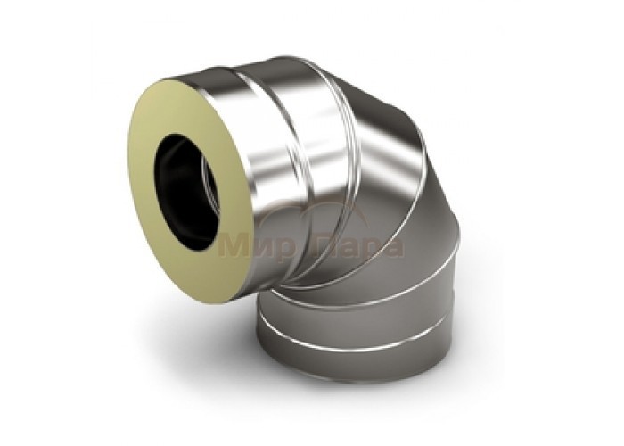 Сэндвич-отвод 90° - используется для смещения оси дымохода в двухконтурном исполнении. Сталь AISI 304/430-0,5/0,5 мм, толщина утеплителя 30 мм.
