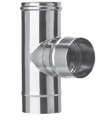 Тройник 90° предназначен для изменения направления дымового канала, используется в местах присоединения теплогенерирующего аппарата к основному каналу. Выполняет функцию очистного приспособления, облегчает обслуживание дымохода.