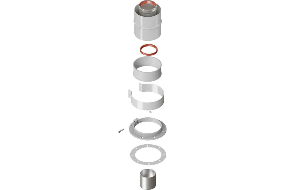 Вертикальный адаптер с хомутом и фланцем торговой марки KRATS для вертикального поднятия дымохода 60/100 классического турбированного котла.