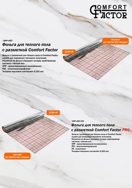 Фольга для теплого пола Comfort Factor Pro с разметкой (1x50м), ширина: 1 метр, длина рулона 50 м
