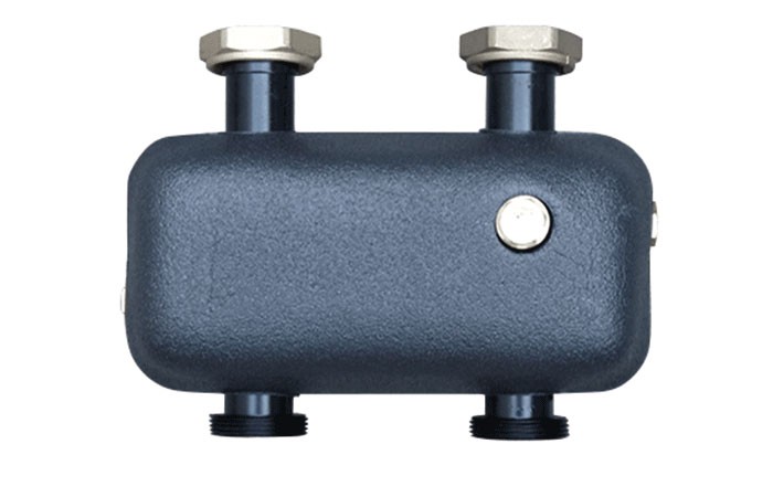 Гидравлическая стрелка Barberi арт. 21M04000001 с теплоизоляцией для горизонтальной/вертикальной установки предназначена для гидравлического разделения контуров источника и потребителей тепла. Т.е. она отсекает воздействие насосов потребителей тепла на котловой насос и наоборот. Устанавливается непосредственно к коллектору.