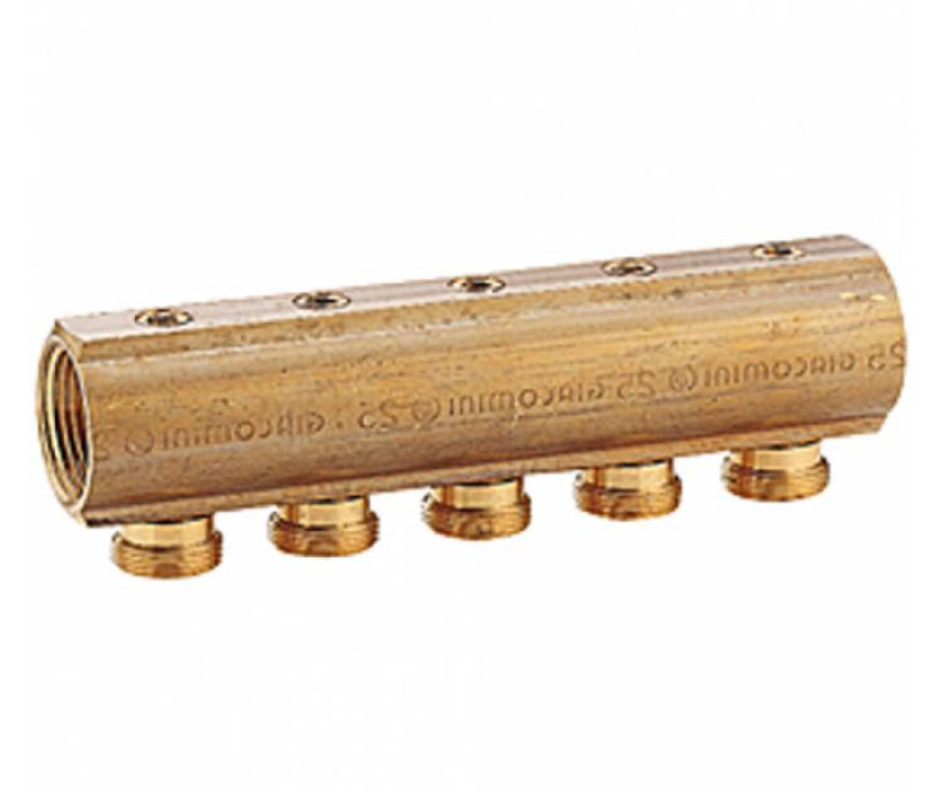Коллектор распределительный латунный, с встроенными отсечными клапанами, с отводами с наружной резьбой. Для регулировки использовать ключ R73K 4 мм