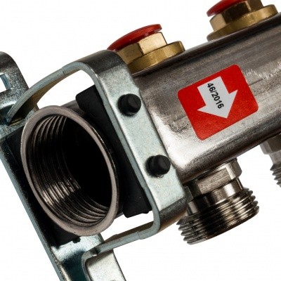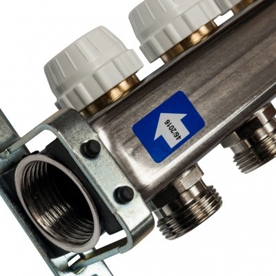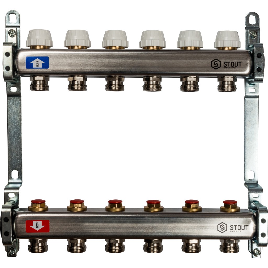 Коллекторный блок из нержавеющей стали служит для распределения потоков по контурам теплого пола, радиаторного отопления, прочих климатических систем, где в качестве теплоносителя используется вода либо незамерзающие растворы гликоля с максимальной рабочей температурой 90 °С, рабочим давлением до 9 бар. Распределительные коллекторы Stout состоят из двух гребенок, каждая из которых имеет от 3 до 12 выходов.