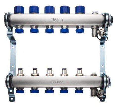 Коллектор (гребенка) из нержавеющей стали без расходомеров TECLine для систем радиаторного отопления.