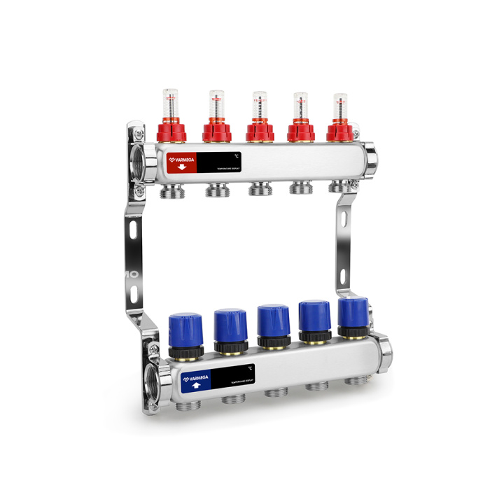 Коллекторные группы предварительной сборки из нержавеющей стали с расходомерами марки Varmega предназначены для распределения и регулирования потоков теплоносителя в низкотемпературных системах отопления (напольное отопление). Оснащены расходомерами на подающем коллекторе и термостатическими вентилями с размером M30x1,5 (с возможностью установки термоэлектрических приводов) на обратном коллекторе. Каждый коллектор подвергается в заводских условиях проверке на функционирование и герметичность уплотнений.