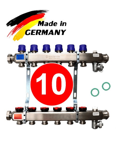 Коллекторная группа MAINCOR 50920010 из нержавеющей стали с двумя сливными кранами на 10 выходов для радиаторов