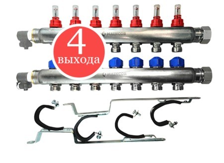 Коллекторная группа MAINCOR 50900004 из нержавеющей стали, с креплением, расходомерами, развоздушивателем, кранами слива, на 4 выхода