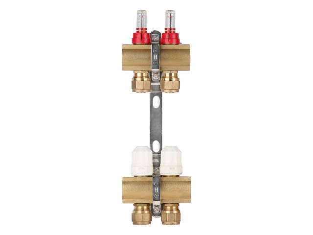 Коллекторная группа AVE777 AV Engineering предназначена для распределения и регулировки систем теплого пола. Материал изготовления коллектора - латунь.