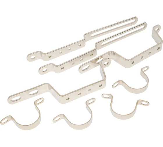 Кронштейн регулируемый для коллекторной группы ONDO пара OCRS2KG0 состоят из крепежной планки, выполненной из стальной анодированной полосы толщиной 3 мм, к которой винтами крепятся два стальных никелированных хомута толщиной 1 мм.