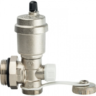 Конечный элемент коллектора, для воздохоудаления и слива/наполнения системы, с встроенными автоматическим воздухоотводным клапаном. Присоединительный размер для коллекторной балки 1".