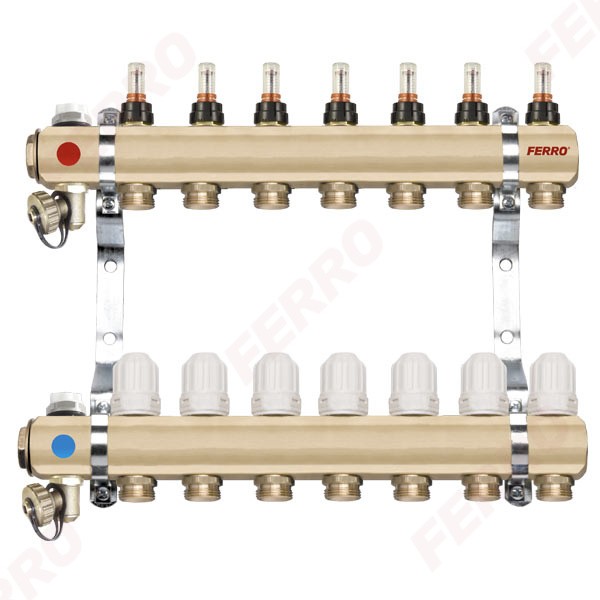 Латунные распределители Ferro серии RZP предназначены для работы в системах типа «тёплый пол». Гарантия 15 лет.