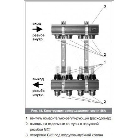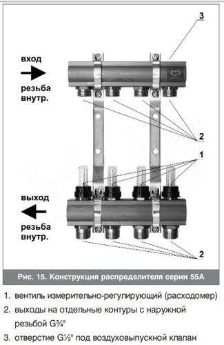 Распределитель KAN-therm с профилем 1'' 55020A латунный на 2 выхода с расходомерами