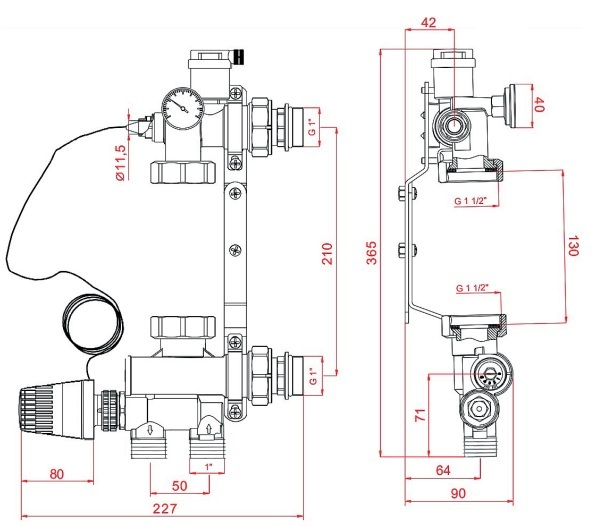 Насосно-смесительный узел ROMMER RDG-0120-009000 с термостатической головкой с выносным датчиком , без насоса для создания в системе отопления здания циркуляционного контура с пониженной до настроечного значения температурой теплоносителя, поддержания температуры и расхода теплоносителя на заданном уровне.