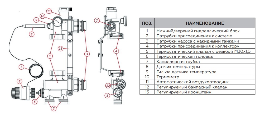 Насосно-смесительный узел ROMMER с термостатической головкой с выносным датчиком - изделие полной заводской готовности. Предназначен для создания в системе отопления здания циркуляционного контура с пониженной до настроечного значения температурой теплоносителя, поддержания температуры и расхода теплоносителя на заданном уровне, обеспечения гидравлической балансировки высокотемпературного и низкотемпературного контуров. Узел применяется в системах встроенного водяного отопления — теплые полы, теплые стены, обогрев теплиц и открытых площадок.