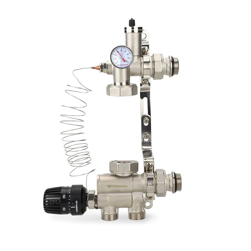 Насосно-смесительный узел Varmega без насоса VM15011, с термоголовкой и выносным датчиком, материал: латунь