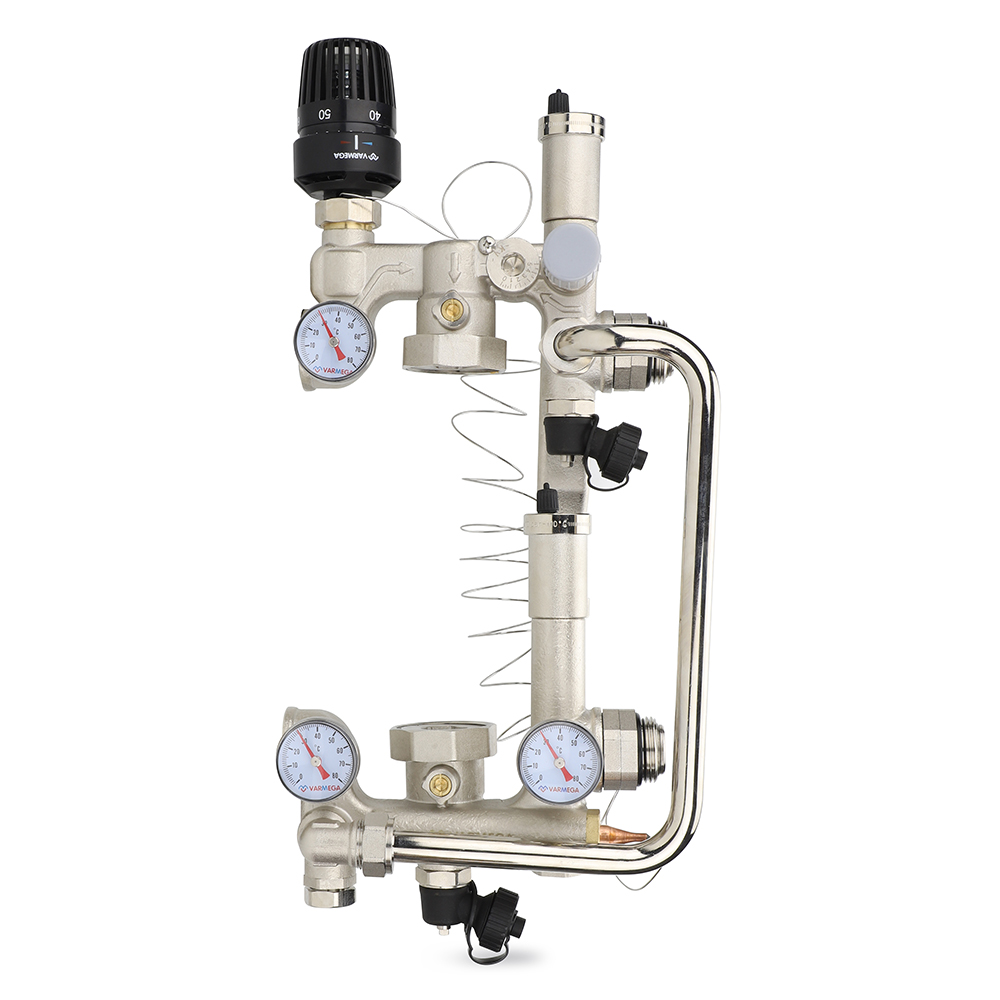 Насосно-смесительный модуль Varmega Combi Varmix-TH разработан специально для интеграции двух различных систем отопления — радиаторной (высокотемпературной) и водяного тёплого пола (низкотемпературной). Он обеспечивает автоматическую стабилизацию температуры и расхода теплоносителя во вторичном контуре, что позволяет эффективно объединить работу обеих систем в одном гидравлическом контуре.