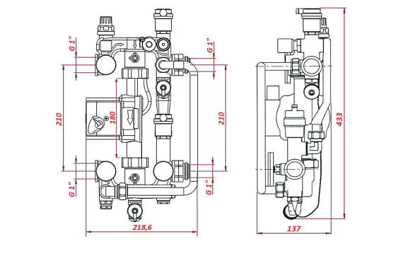 Насосно-смесительный узел ROMMER RDG-0120-008000 с термоголовкой, перепускным клапаном и байпасом, без насоса для обеспечения циркуляции в системах радиаторного отопления, а также циркуляции и поддержания температуры подающего теплоносителя в пределах 20-60°С в системах поверхностного отопления.