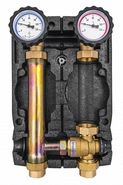 Насосная группа BRV DN25 1'' 21358N-F4-W6 с насосом Wilo RS 25/6, с термостатическим клапаном F4 (45-70 °C) и препускным клапаном