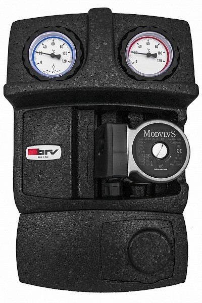 Насосная группа BRV DN25 1'' 21358N-M3-W6 с трехходовым смесительным клапаном, насосом WILO RS 25/6 и препускным клапаном