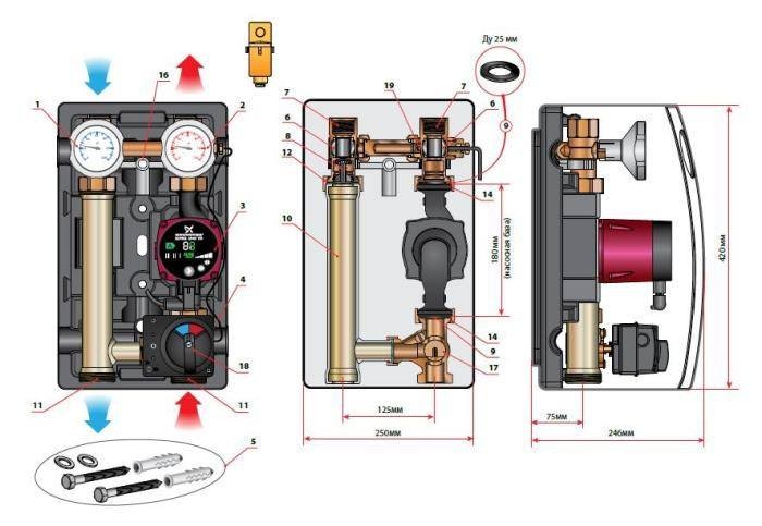 Насосная группа Meibes MK 1" с ограничением температуры подающей линии ('электронный термостат 20-80°C) МЕ 45890.5 ЕА предназначена для обвязки системы отопления дома с котлом до 85 кВт