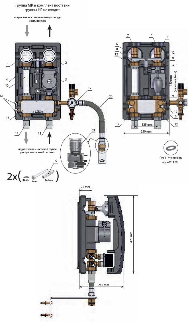 Насосные группы Meibes UK разделительный контур с разделительным теплообменником и насосом с бронзовым корпусом используются для подачи теплоносителя на разделительный прямой контур на основе нержавеющего меднопаянного теплообменника, который устанавливается сверху на любую из групп UK или MK. Позволяет подключать к системе отопления контур с антифризом или с водой, в которой находится растворённый кислород из атмосферы.