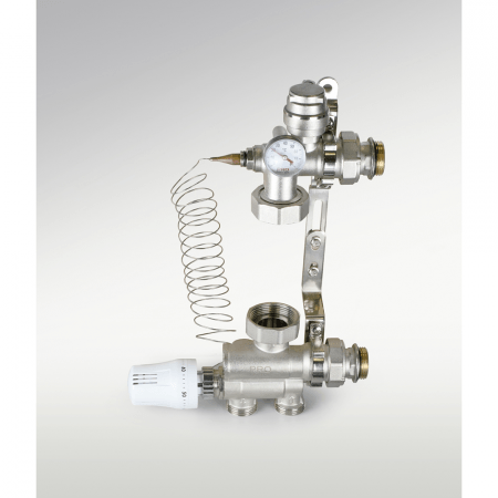 Насосно-смесительный узел Profactor PF MB 841 в паре с коллектором служат для обеспечения автономной циркуляции теплоносителя в системе теплого пола и радиаторов отопления. Смесительный узел Profactor PF MB 841 с термоголовкой с выносным датчиком обеспечивает принудительную циркуляцию, регулировку и поддержание определенной температуры воды в теплом поле.