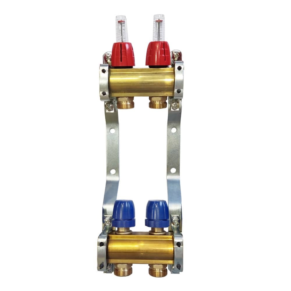 Коллектор Capricorn Optimum 1 для тёплого пола 2 выхода (латунь), предназначенный для распределения и управления параметрами теплоносителя в системе теплых полов.