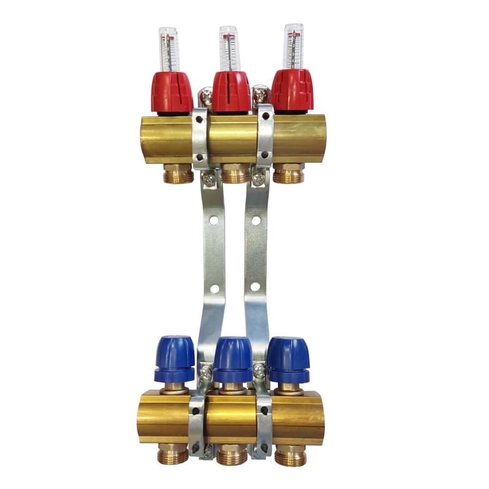 Коллектор Capricorn Optimum 1 для тёплого пола 3 выхода (латунь), предназначенный для распределения и управления параметрами теплоносителя в системе теплых полов.