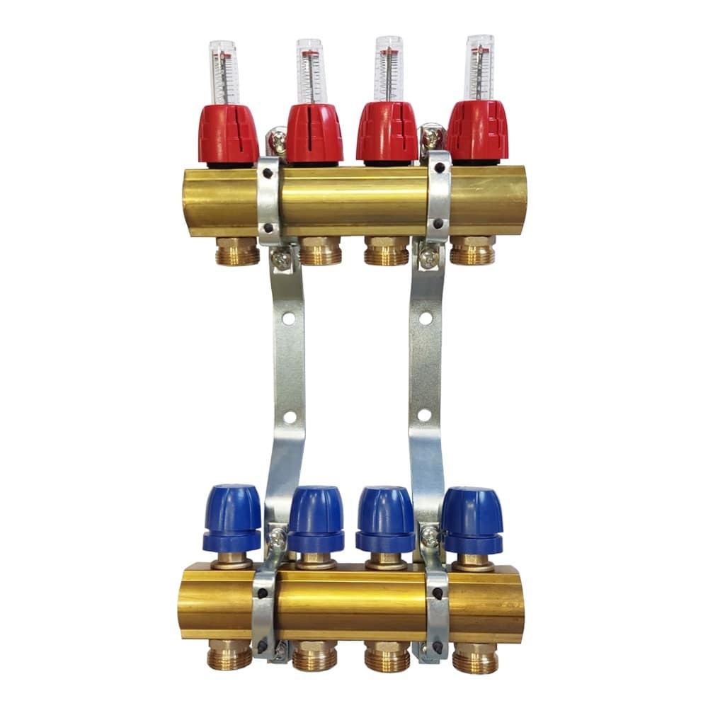 Коллектор Capricorn Optimum 1 для тёплого пола 4 выхода (латунь), предназначенный для распределения и управления параметрами теплоносителя в системе теплых полов.
