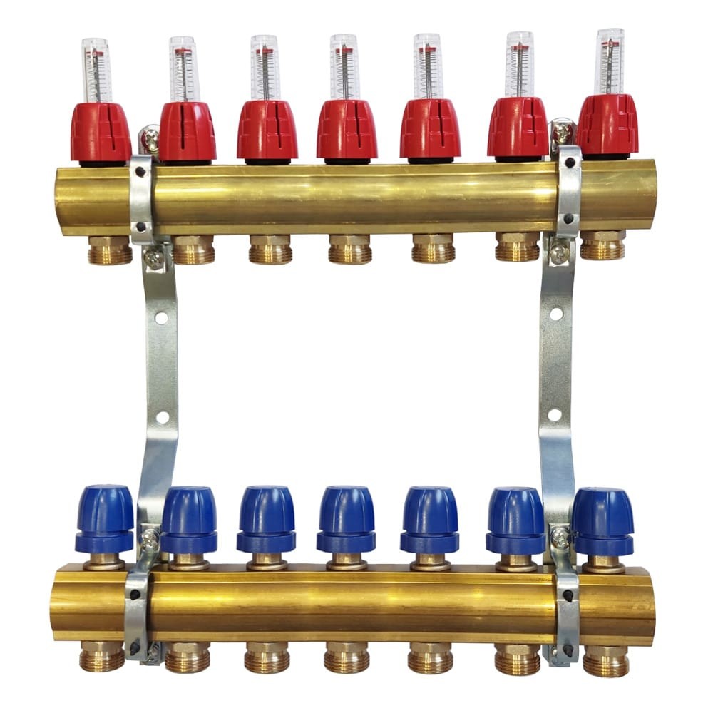 Коллектор Capricorn Optimum 1 для тёплого пола 7 выходов (латунь), предназначенный для распределения и управления параметрами теплоносителя в системе теплых полов.