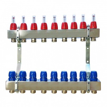 Коллектор для теплого пола – это устройство, предназначенное для распределения и управления параметрами теплоносителя в системе теплых полов. Он состоит из металлических гребенок с выходами для подключения к системе.