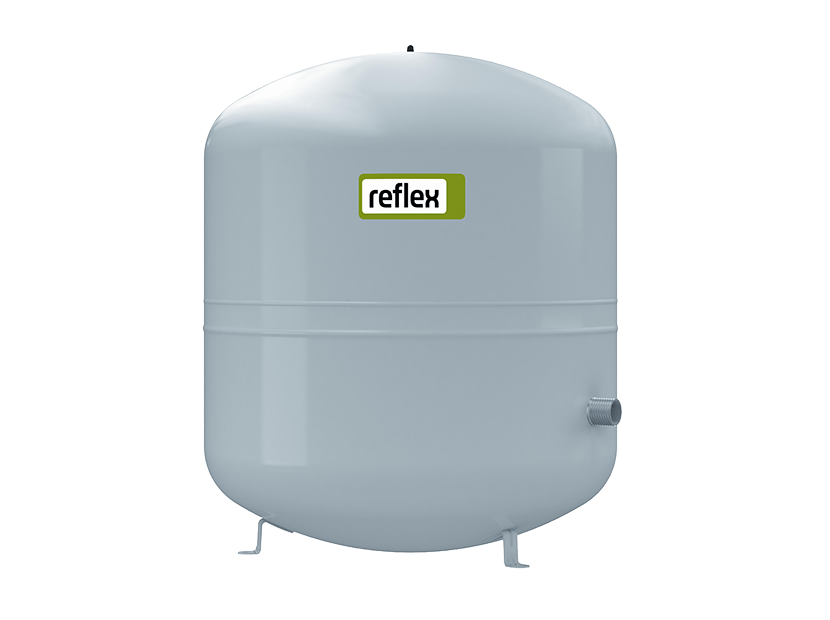 Мембранный расширительный бак Reflex NG предназначен для использования в закрытых системах тепло- и холодоснабжения, а также в системах отопления, построенных в соответствии с DIN EN 13831. Расширительный бак имеет цилиндрическую форму, внутри разделен мембраной на две камеры: воздушную и водяную. Воздушная камера заполнена предварительно закачанным низкоинертным газом (азотом под давлением), водяная камера предназначена для воды.
