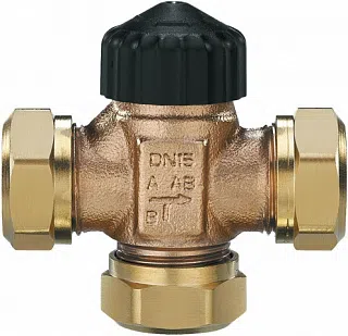 Трехходовой смесительный клапан предназначен для смешивания потоков жидкости в системах отопления или холодоснабжения, изготовлен из бронзы и оснащён защитным колпачком.
